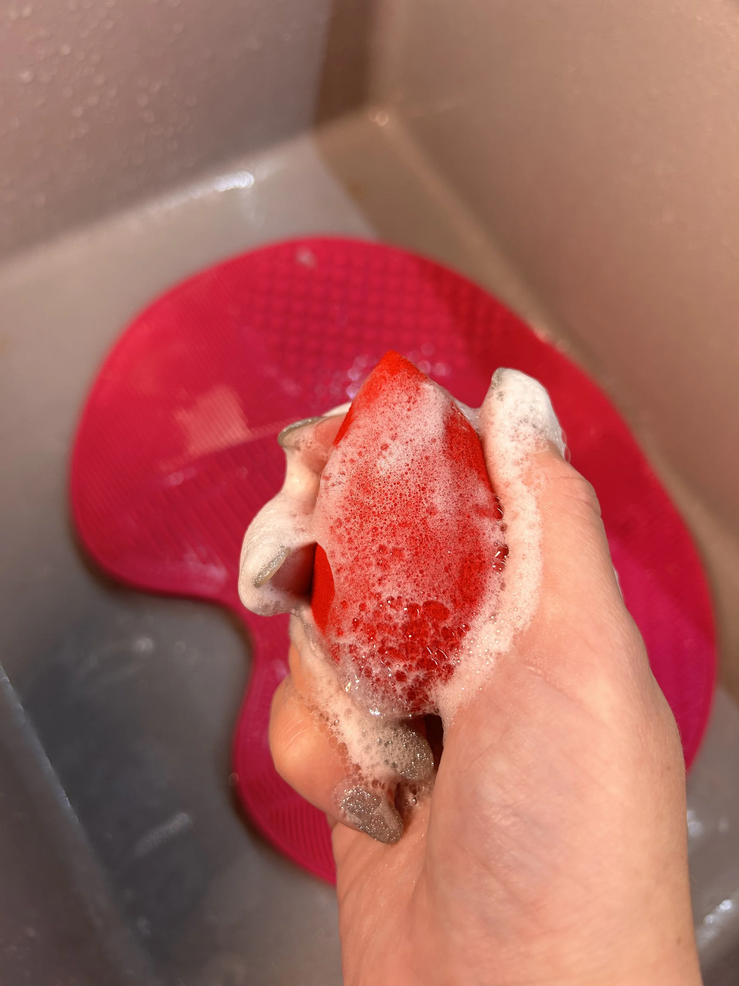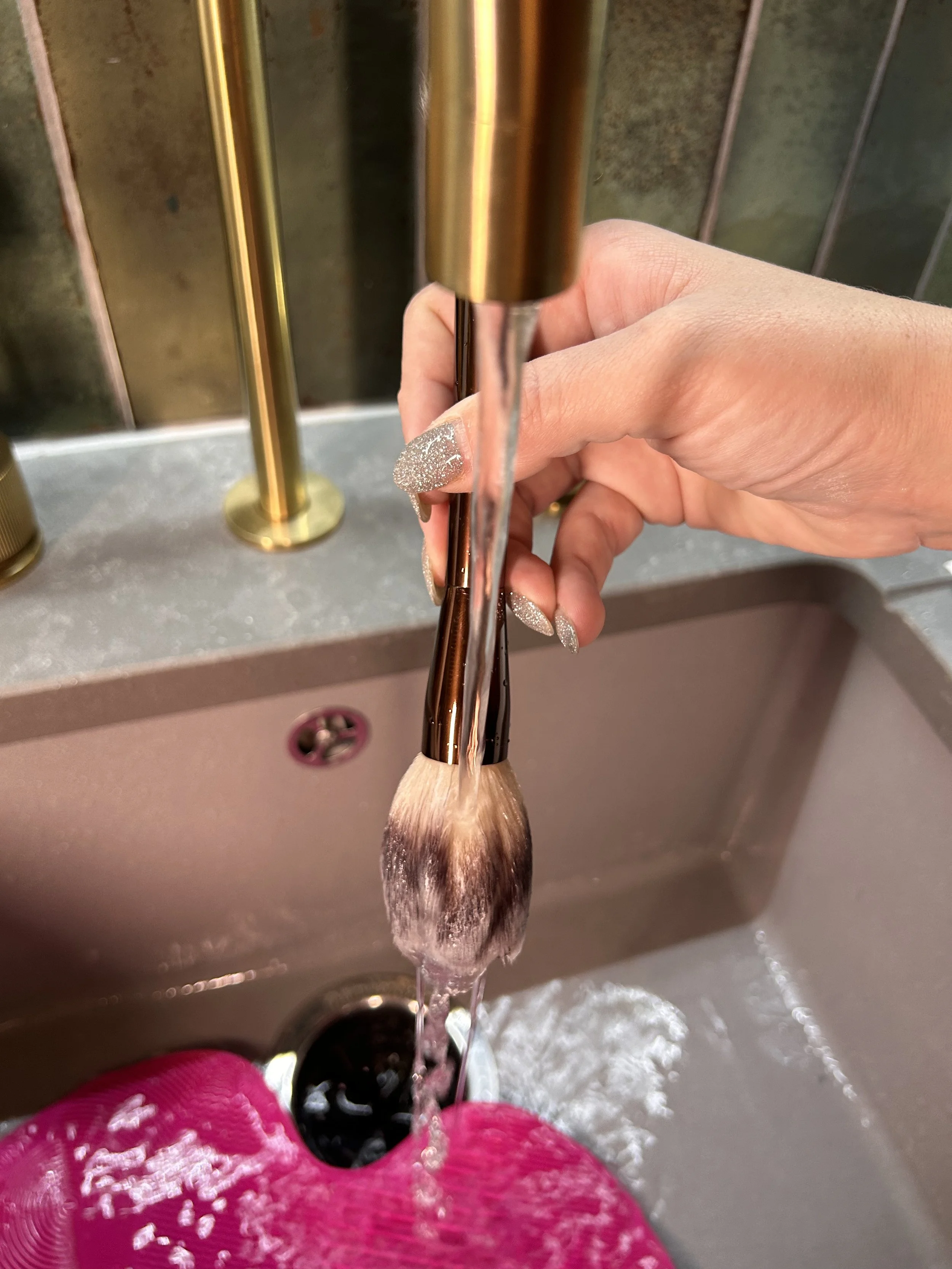 The Sigma Brush Cleaning Mat is one of my best purchases ever. I’ve had it for years and it's still like new. I also have the Glove Version for when I travel. You stick the mat to the bottom of the sink with the attached suckers and use the textured areas to deep clean. It's written on the mat but you use the larger bumps for larger brushes, such as ones for foundation, blushers and bronzers. And the small bumps for smaller ones such as eyeshadow, concealer and lip brushes.