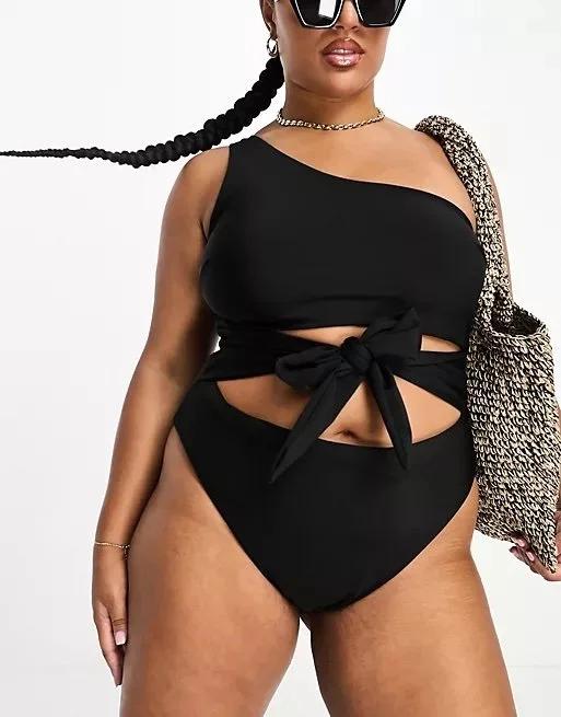 This one-piece is fuego. With its bold cut-out detailing and asymmetrical one-shoulder design, it defo brings a touch of edge. The figure-hugging fit flatters your curves, while the black is just totally timeless. Whether you're lounging poolside or catching waves, this number is bound to make a statement.