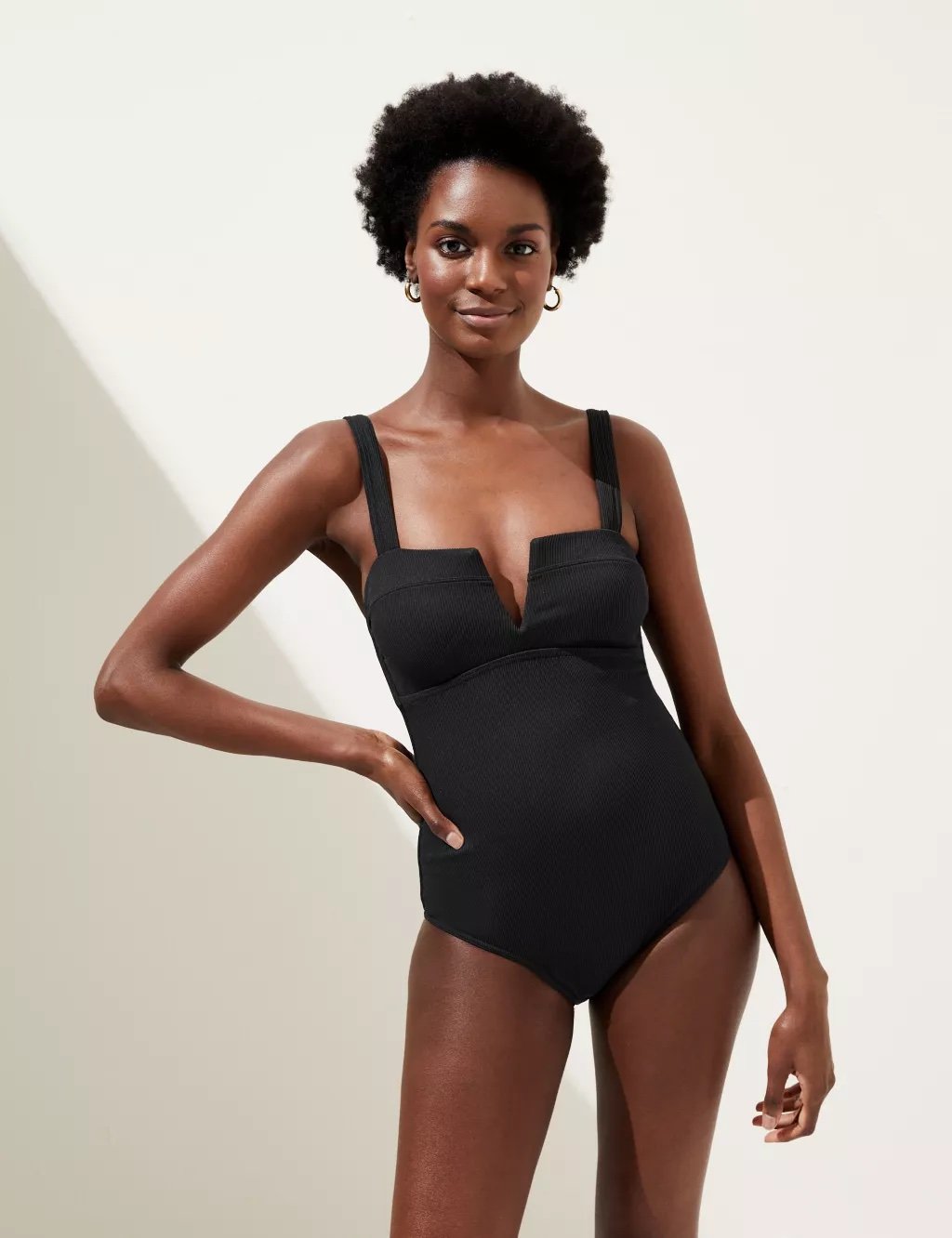Yes to flaunting your beach bod with this M&S tummy control ribbed padded v-neck swimsuit. This one-piece is designed to enhance your natural curves and give you a super flattering silhouette. The ribbed texture adds a touch of chicness (who knows whether that’s an actual word), while the padded cups offer comfortable support and a beautiful shape.